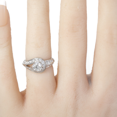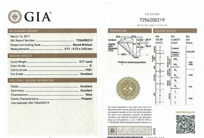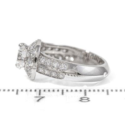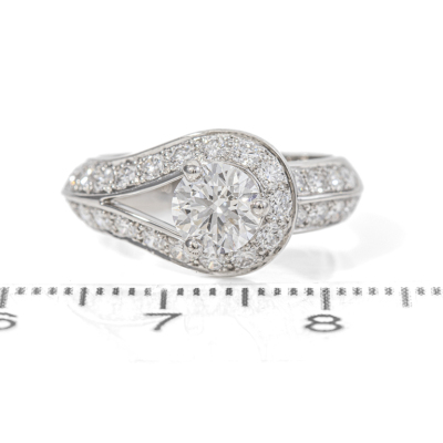 Van Cleef & Arpels Couture Diamond solitaire ring with centre round brilliant cut natural Diamond of 0.71ct (with GIA Summary Report graded as D VVS1 #7256200219) and 29 round natural Diamonds totalling approximately 0.82ct (Estimated grading: F VS). Platinum - 950. VCA ring size: 47, actual ring size H - ring resizing is not recommended. Band Width: 3.7mm - 4.2mm. Weight: 6.4g. With Van Cleef & Arpels Authenticity Certificate dated 19/01/2019 and box. (Pre-owned)