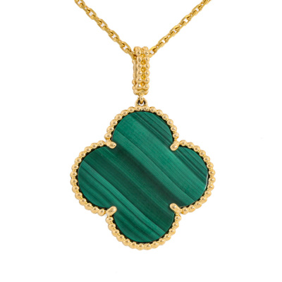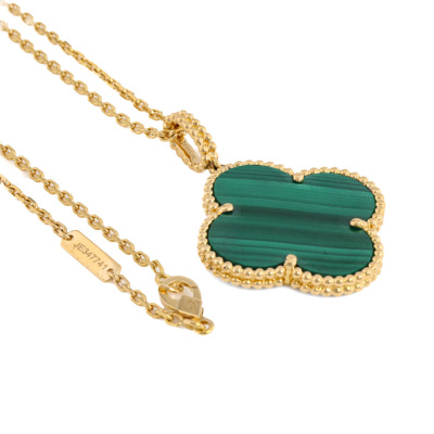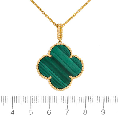 Van Cleef & Arpels Magic Alhambra long necklace with 1 Malachite motif. 18ct yellow gold with Van Cleef & Arpels 18ct yellow gold adjustable chain. Adjustable to 82cm to 90cm. Weight: 16.9g. With Certificate #7266368293117647.