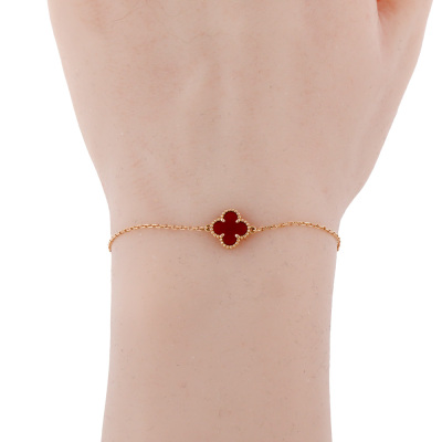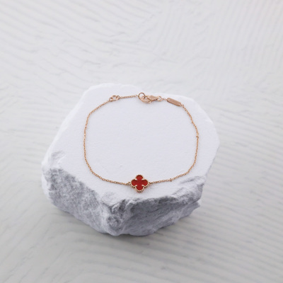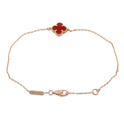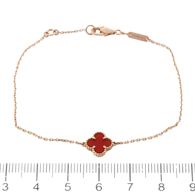 Van Cleef & Arpels Sweet Alhambra bracelet with Carnelian. Motif size: 9.5mm. 18ct rose gold. Length: 16cm - 17.5cm. Weight: 1.8g. (Pre-owned)