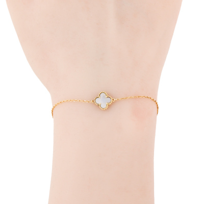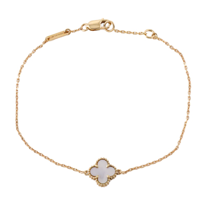 Van Cleef & Arpels Sweet Alhambra bracelet with Mother of Pearl inlay. Motif size: 9.5mm. 18ct yellow gold. Length: 16cm - 17.5cm. Weight: 1.8g. (Pre-owned)