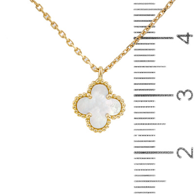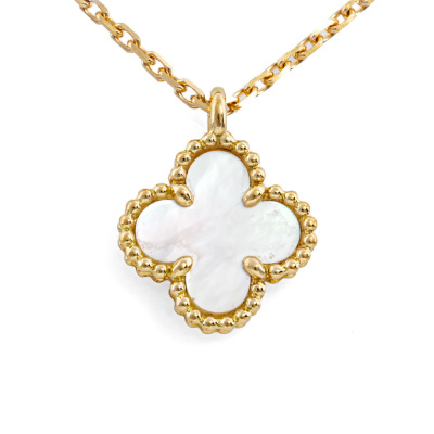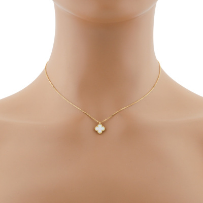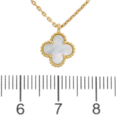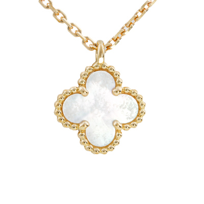 Van Cleef & Arpels Sweet Alhambra pendant with white Mother-of-Pearl inlay. 18ct yellow gold with Van Cleef & Arpels 38cm - 40cm 18ct yellow gold adjustable chain. Weight: 2.8g. (Pre-owned)