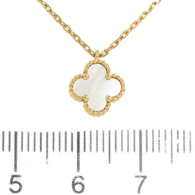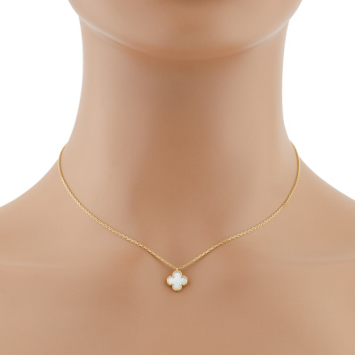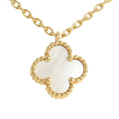 Van Cleef & Arpels Sweet Alhambra pendant with Mother of Pearl four-leaf clover motif of size 9.5mm. Van Cleef & Arpels 18ct yellow gold with 38cm - 40cm 18ct yellow gold chain. Weight: 2.9g. With Van Cleef & Arpels Box. (Pre-owned)