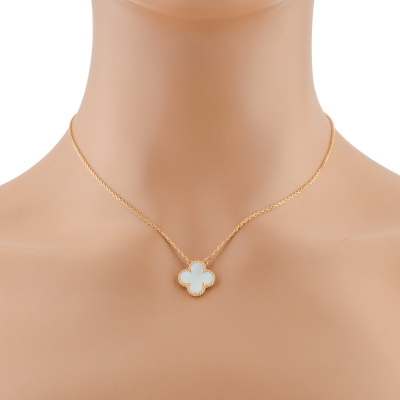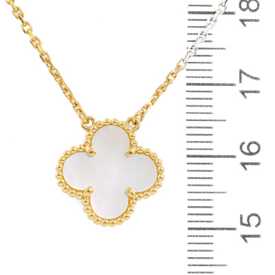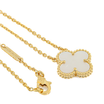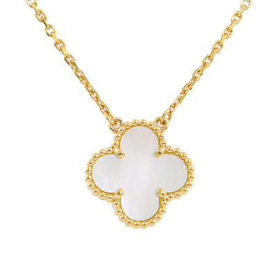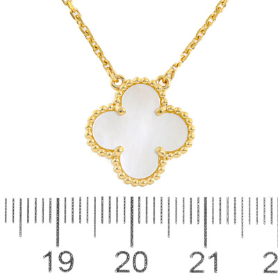 Van Cleef & Arpels Vintage Alhambra pendant with Mother of Pearl. Motif size: 15mm. 18ct yellow gold with 18ct yellow gold 37cm - 41.5cm adjustable Van Cleef & Arpels chain. Weight: 5.2g. With Van Cleef & Arpels Certificate of Authenticity dated 04/09/2020 and Van Cleef & Arpels inner & outer box. (Pre-owned)