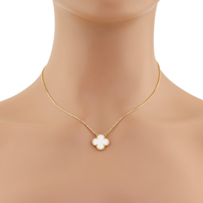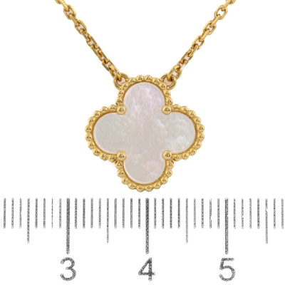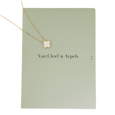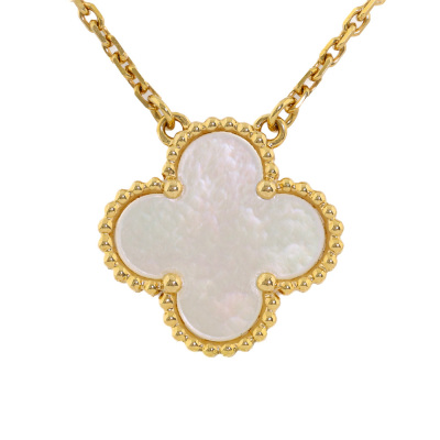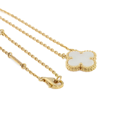 Van Cleef & Arpels Vintage Alhambra pendant with Mother of Pearl inlay. Motif size: 15mm. 18ct yellow gold with 37cm - 41.5cm Van Cleef & Arpels 18ct yellow gold adjustable chain. Weight: 5.3g. With Van Cleef & Arpels box and Van Cleef & Arpels Authenticity Certificate dated: 22/05/15. (Pre-owned)