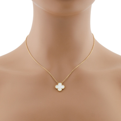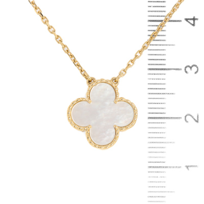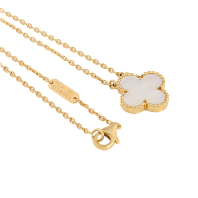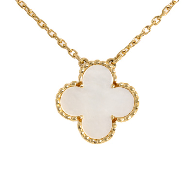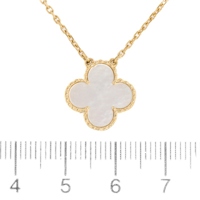 Van Cleef & Arpels Vintage Alhambra pendant with Mother of Pearl inlay. 18ct yellow gold with 38cm - 43cm Van Cleef & Arpels 18ct yellow gold adjustable chain. Weight: 5.1g. With certificate #2148119415115073.