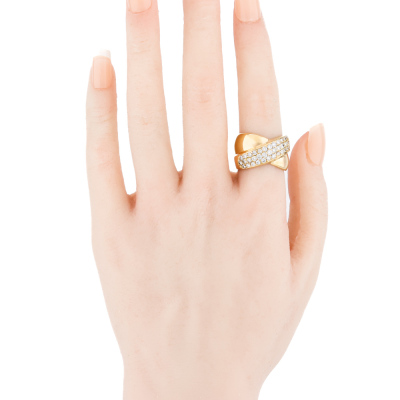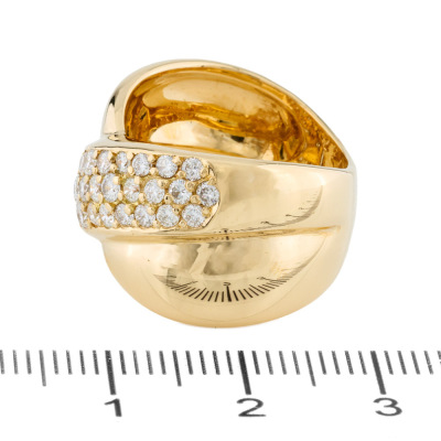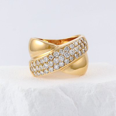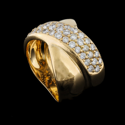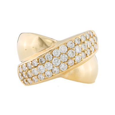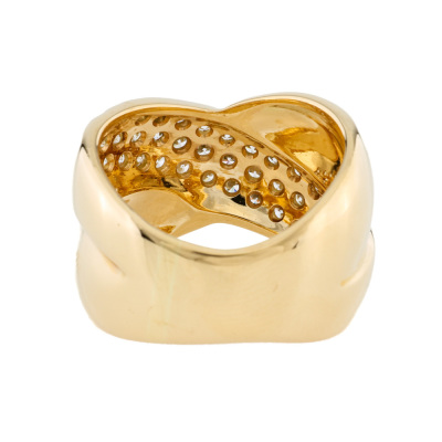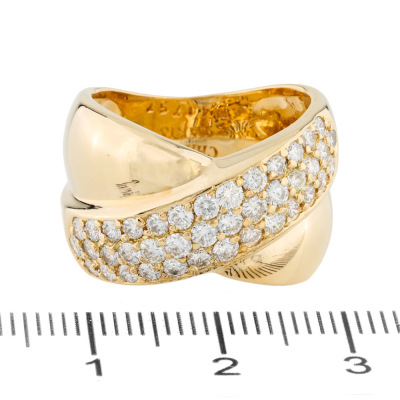 Vintage Chaumet X Diamond ring with round Natural Diamonds totalling 1.20ct (Estimated grading: F-G VS). 18ct yellow gold. Ring size M3/4. Minimum band width: 7.7mm. Weight: 13.7g. With Invoice dated 16/07/92.