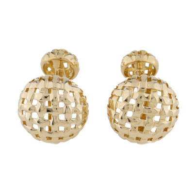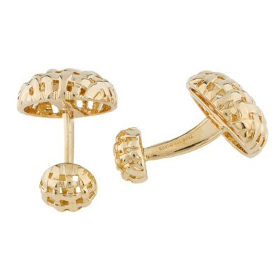 Vintage Tiffany & Co. Vannerie basket weave design cufflinks. 18ct yellow gold. Crica 1995. Motif diameter: 16.8mm. Weight: 14.7g.