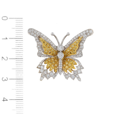 Yellow & White Diamond Butterfly Brooch